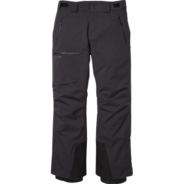 The pants are constructed with Marmot’s two-layer, seam-taped MemBrain fabric and lightweight PrimaLoft Black Eco Insulation to keep you warm. Internal snow gaiters help keep the snow out and zippered hand, thigh, and lower-leg pockets keep gear safe and dry.